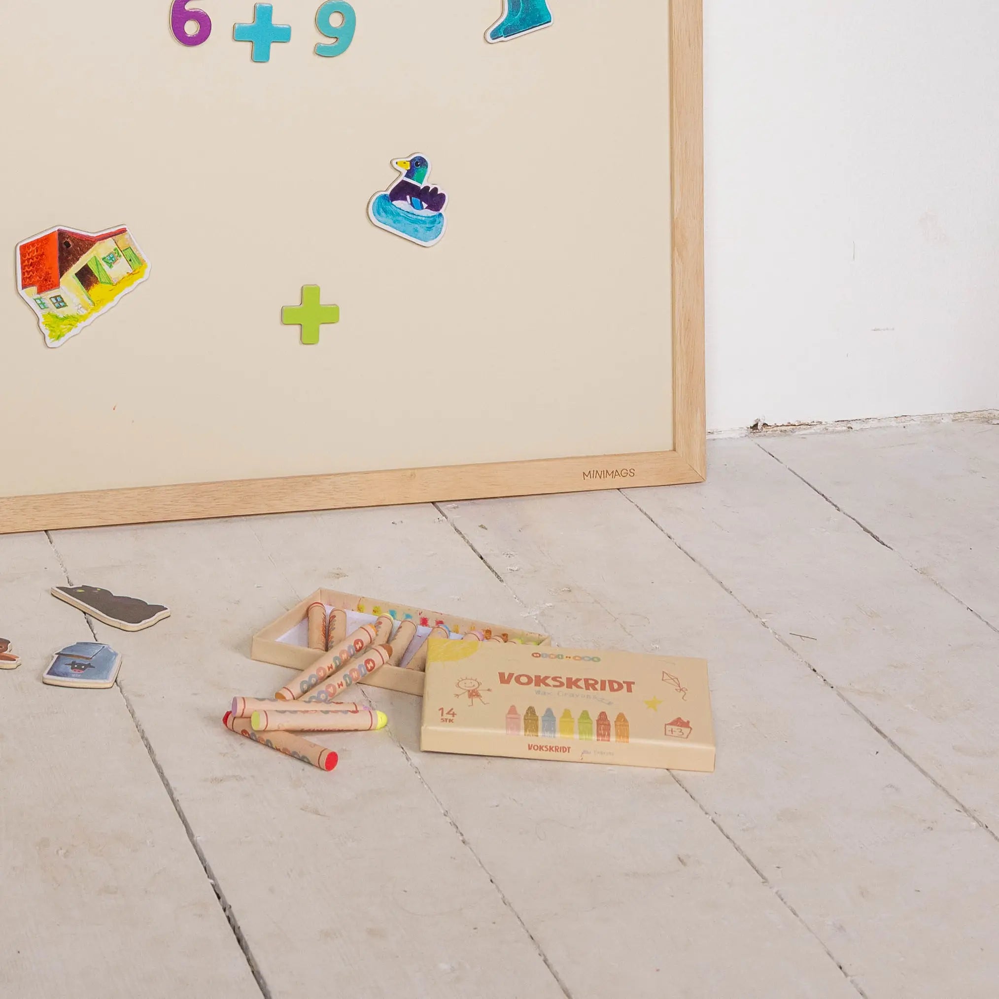 Er du klar til at vække dit MagBoard til live? Vores vaskbare vokskridt er skabt specielt til Minimags’ magnetiske kridttavler – støvfri, bløde og nemme at bruge. Tegn, skriv, regn eller slip fantasien løs: lav stier på bondegården, tegn rundt om magneterne, skriv en hilsen eller spil kryds og bolle. Med lidt vand kan farverne komme mere til live, og børnene kan lave et maleri – eller hvad de lyster. Kridtene kan selvfølgelig også bruges på papir.