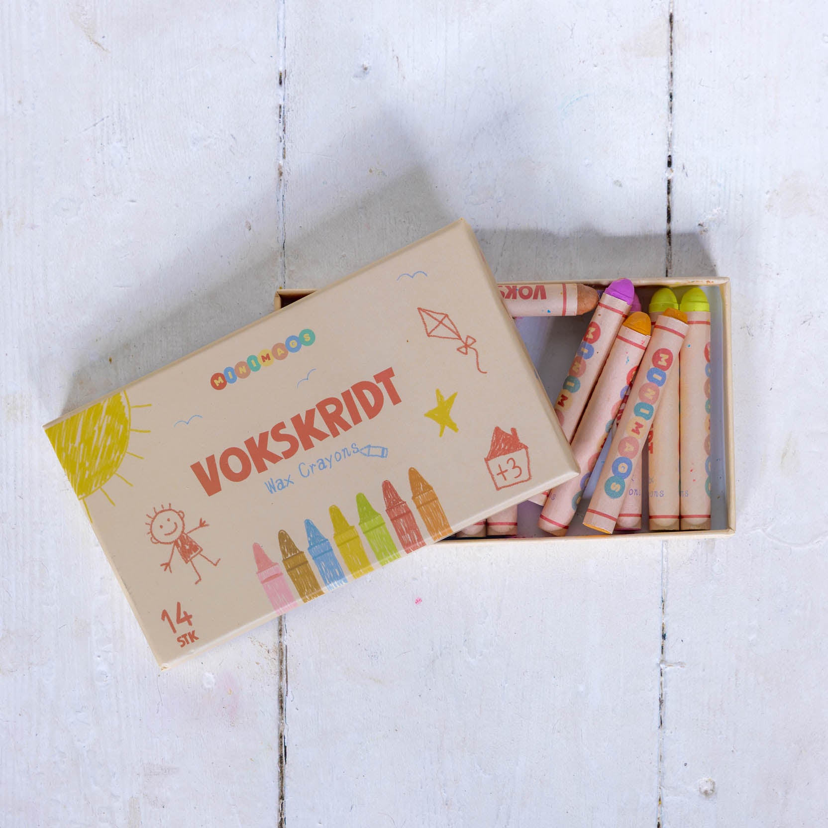 Ja, det kan de sagtens! De tegner rigtig fint på almindeligt papir, og kan også bruges på andre glatte overflader – endda i badet. De fungerer som klassiske vokskridt, men det, der gør vores særlige, er at de er vaskbare – så hvis børnene tegner ud over stregerne, kan det nemt fjernes igen.