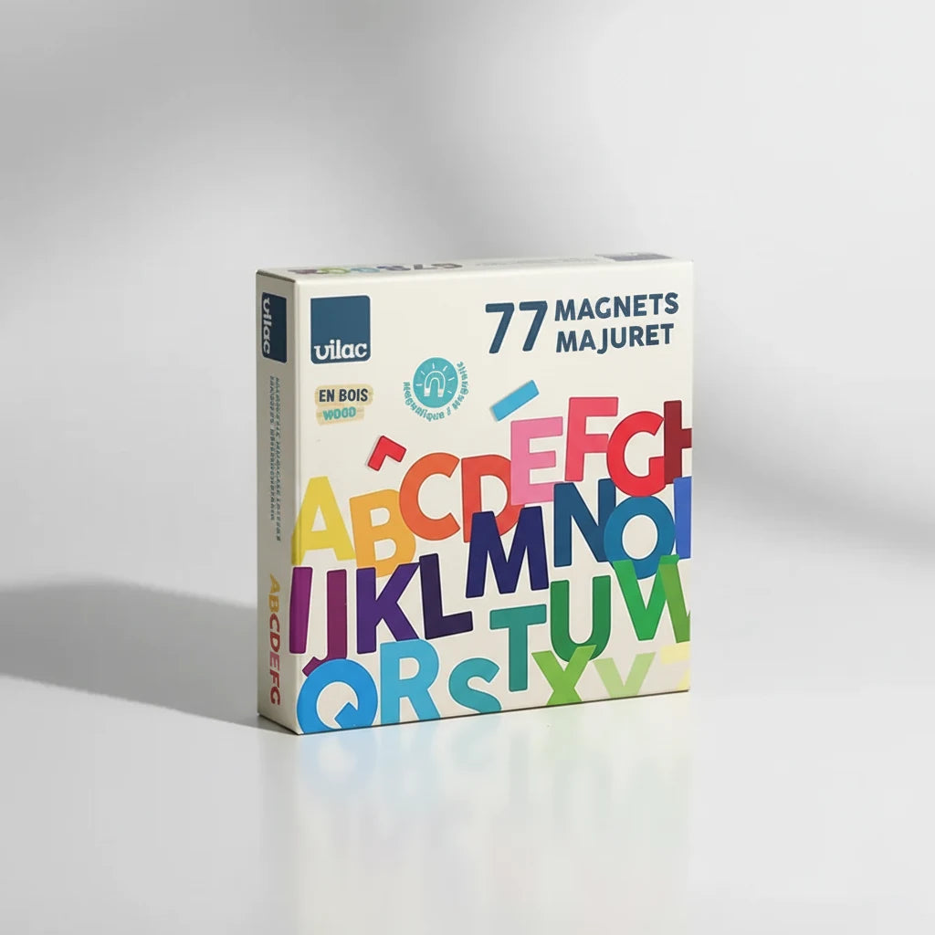 Gå på alfabet-eventyr med de farverige bogstavmagneter fra Vilac! Perfekte til børn, der skal til at lære at stave – og som elsker at lege samtidig. Sæt bogstaverne op på MagBoardet og skriv små beskeder som “Godmorgen” eller barnets navn. Så bliver stavning en naturlig og sjov del af hverdagen. De kan både se og mærke bogstaverne, og med et MagBoard foregår legen i øjenhøjde og stående position – her kombineres læring og bevægelse helt naturligt.